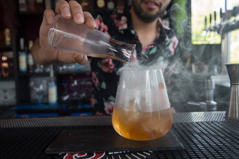 Si buscas algo con más carácter, no dudes en pedir el "maguey fashioned", con tequila reposado, bastante mezcal, sirope de agave, Amargo de Angustura, mucho hielo y el ahumado en roble que se aplica ahí, en vivo y en directo ($ 7.400). Una joya de cóctel.