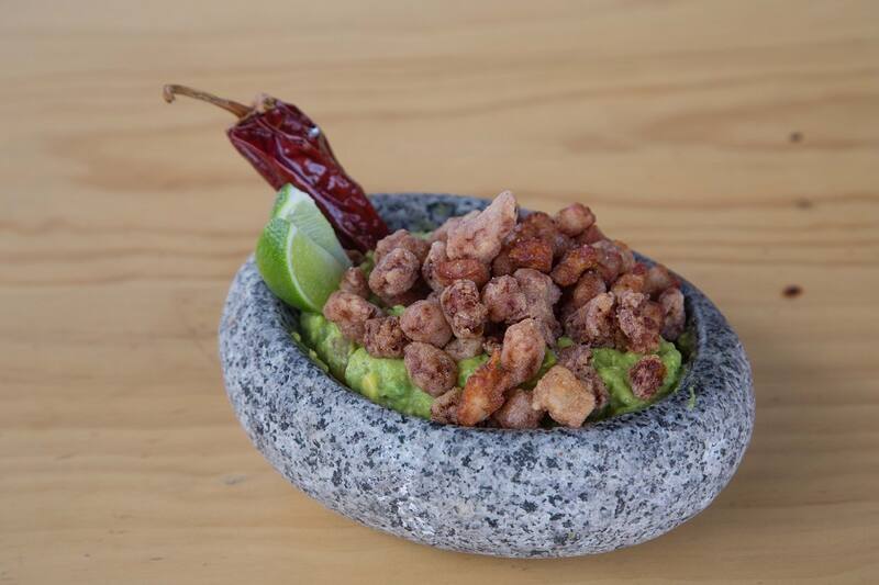 Nada mejor que sentarse entonces en esa terraza —o en el salón interior, donde está la cocina abierta y puedes ver a Juan en acción— y disfrutar unos "chicharrones con guacamole", plato para compartir 100% recomendable, por la agradable combinación entre el cerdo marinado en sal y vinagre, y frito, más el frescor del guacamole que viene con limón ($ 6.600). Perfecto para iniciar la noche.